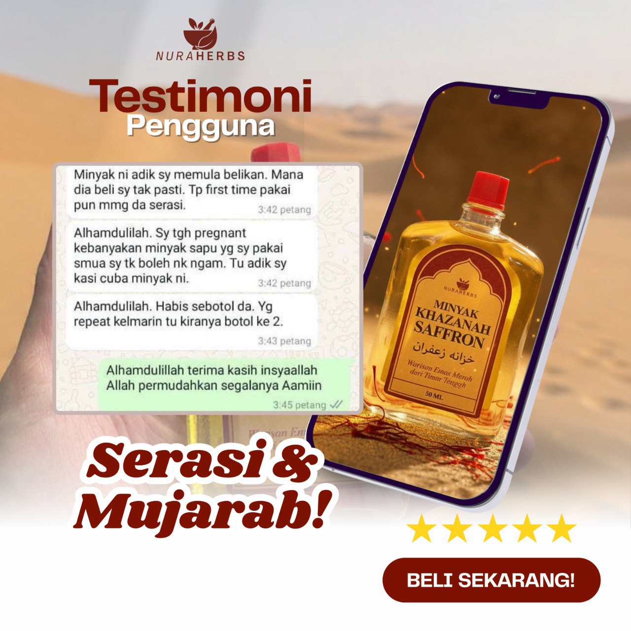 Lebih 25,983 Pengguna Minyak Khazanah Saffron Berikan Rating 5 Sebagai Tanda Berpuas Hati
